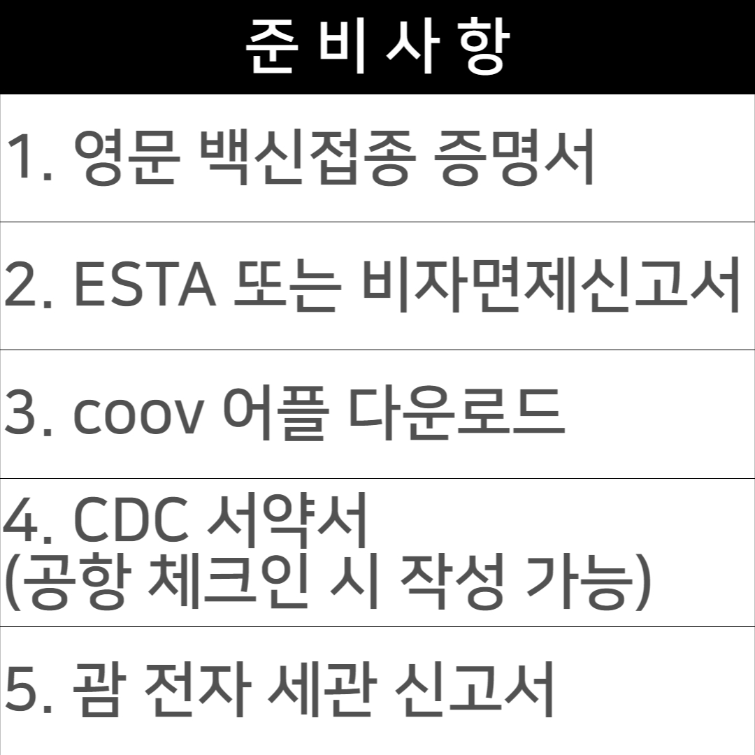 세계적인 휴양지, 하와이 여행을 위해서는 영문 백신 접종증명서와 CDC 서약서 그리고 ESTA만 준비하면 됩니다. 영문백신접종증명서에는 성명, 생년월일, 발급기관명, 백신종류, 백신 접종일 등이 명시되어야 합니다.